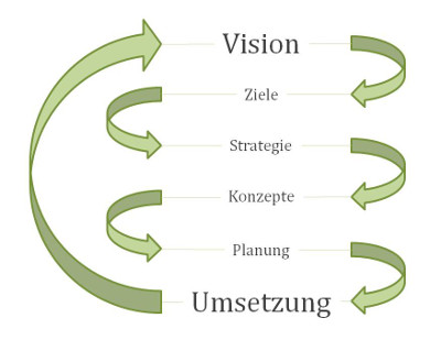 Machen Sie Ihren Purpose und Ihre Vision zu Ihren führenden Entscheidungsprämissen und leiten Sie daraus alle weiteren Ziele, Strategien, Projekte und Instrumente ab.